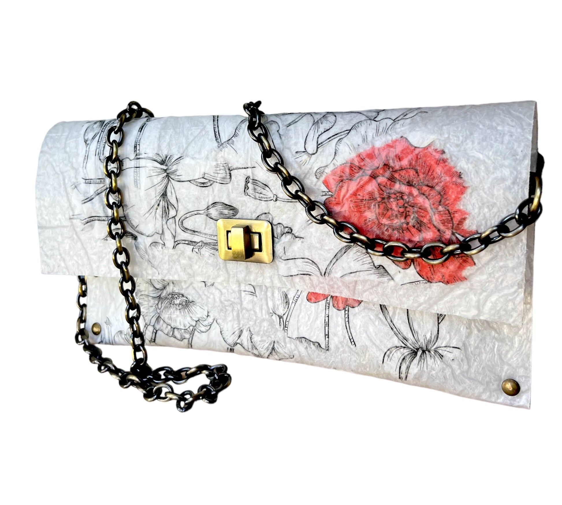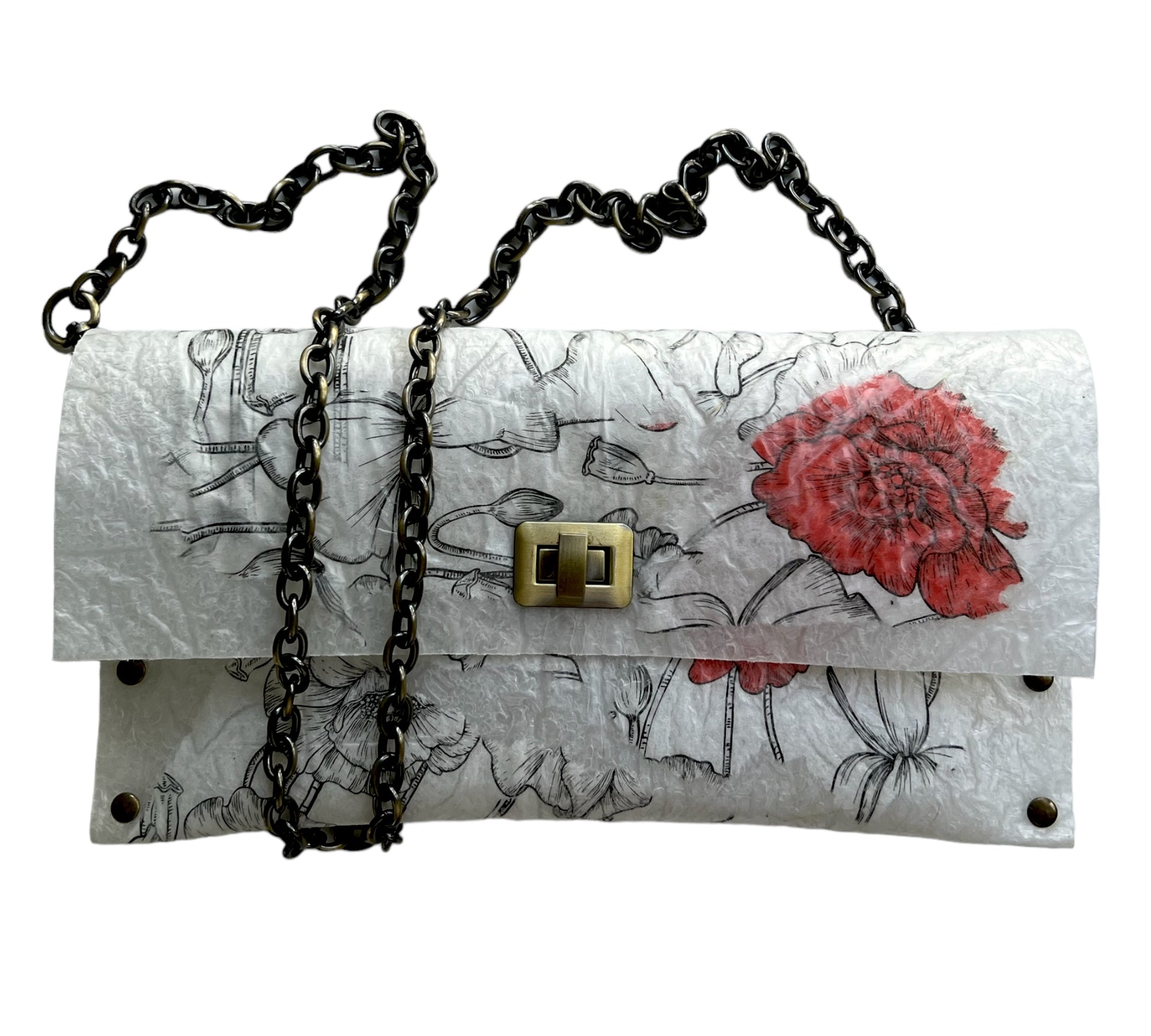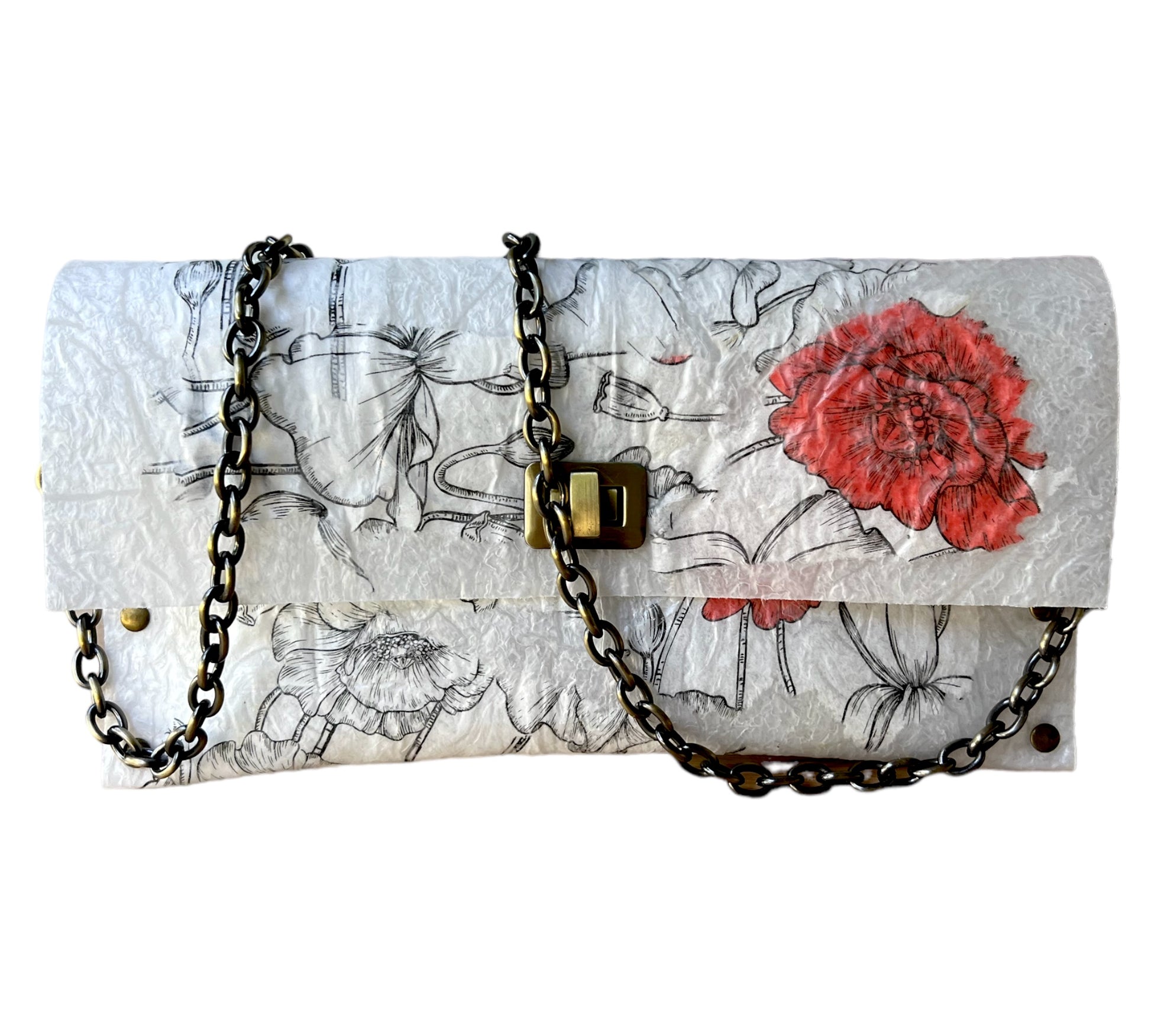 This eye-catching abstract floral design purse features a beautiful decoupage rose set off against a stark white background for a bold, modern look. The amazing design of this purse ensures that no two will ever be the same, making a stylish statement wherever you go.