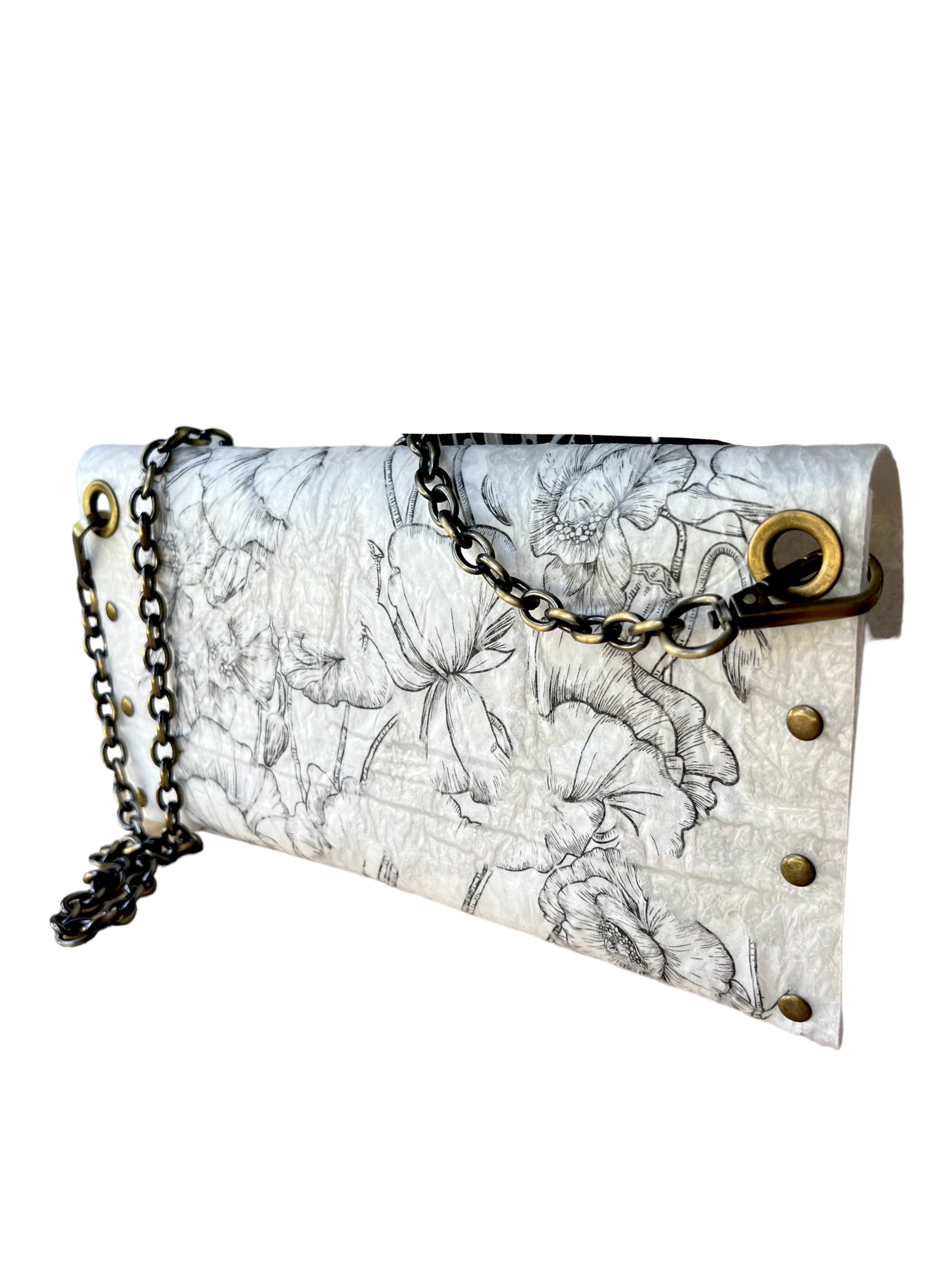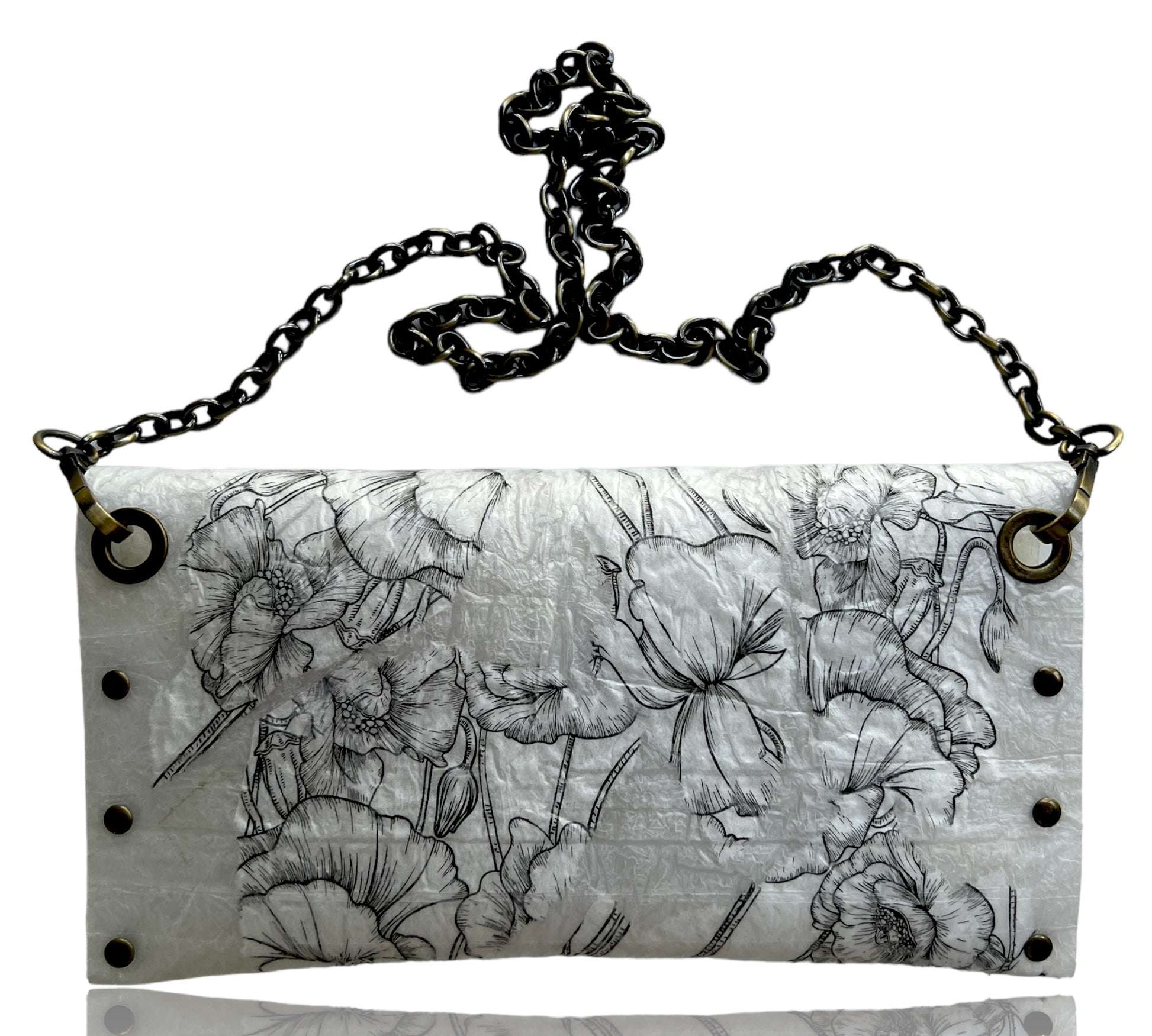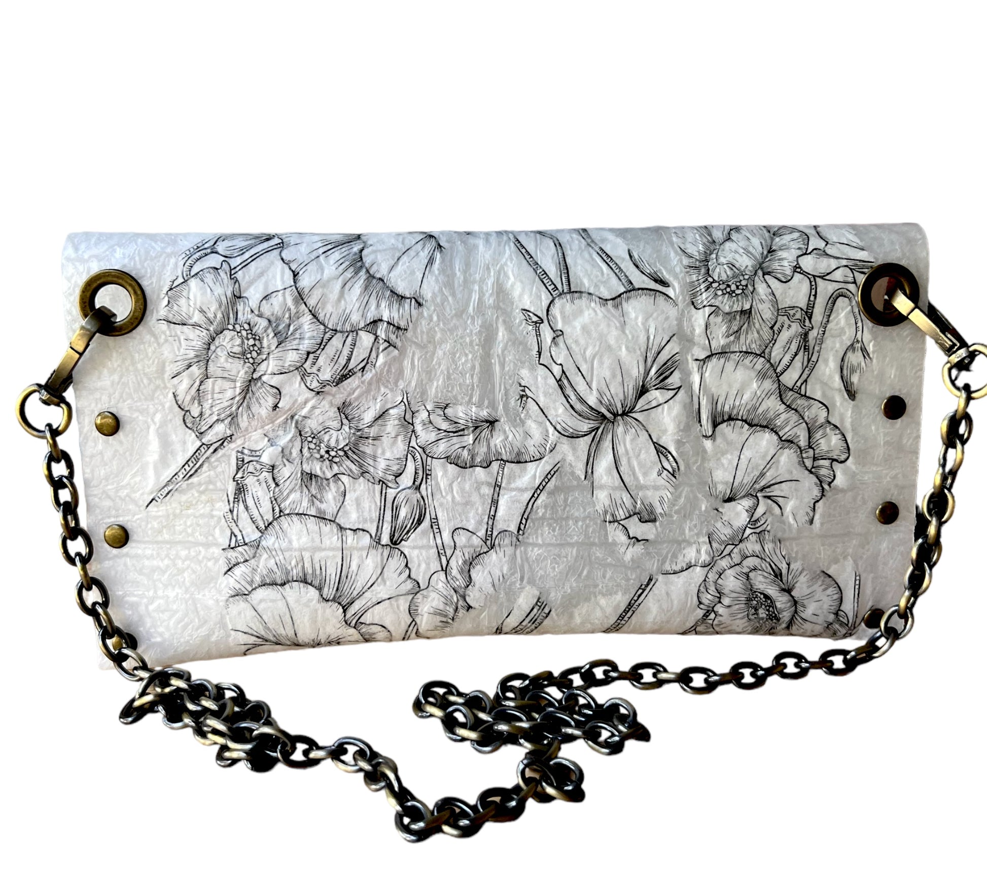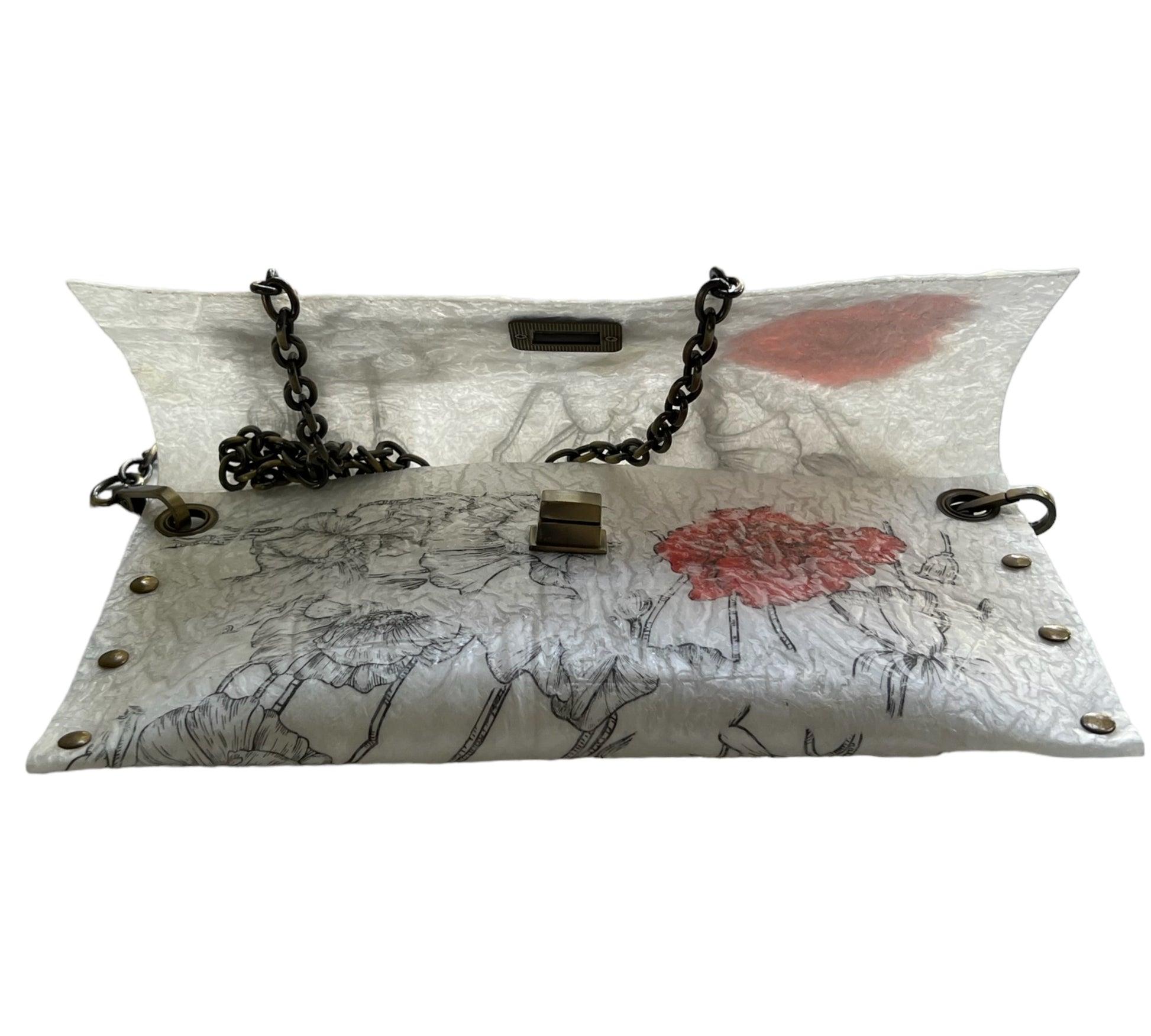This eye-catching abstract floral design purse features a beautiful decoupage rose set off against a stark white background for a bold, modern look. The amazing design of this purse ensures that no two will ever be the same, making a stylish statement wherever you go.